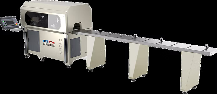 Solución automatizada de corte y perforación recta, con un alimentador automático para diversos materiales como aluminio, PVC (vinilo) y perfiles de madera.